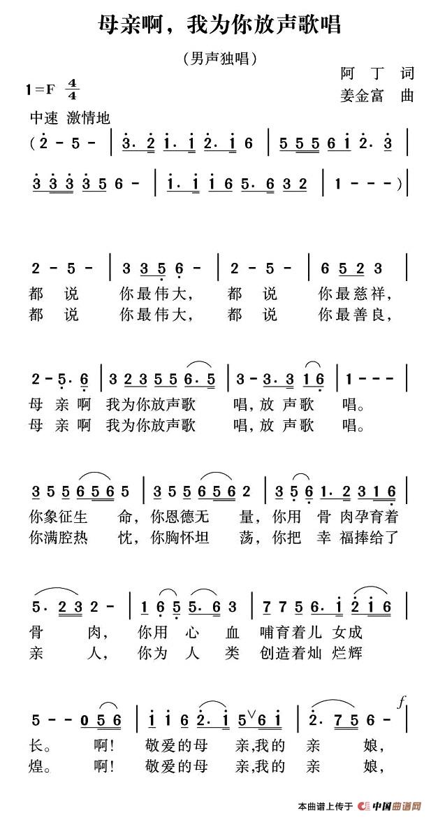 关于《母亲啊,我为你放声歌唱》曲谱的评论