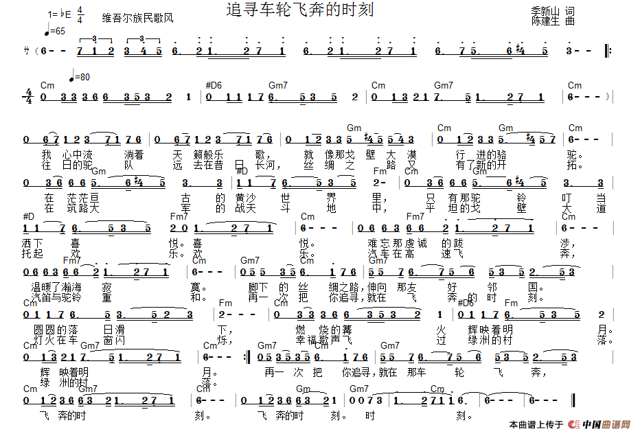 关于《追寻车轮飞奔的时刻》曲谱的评论