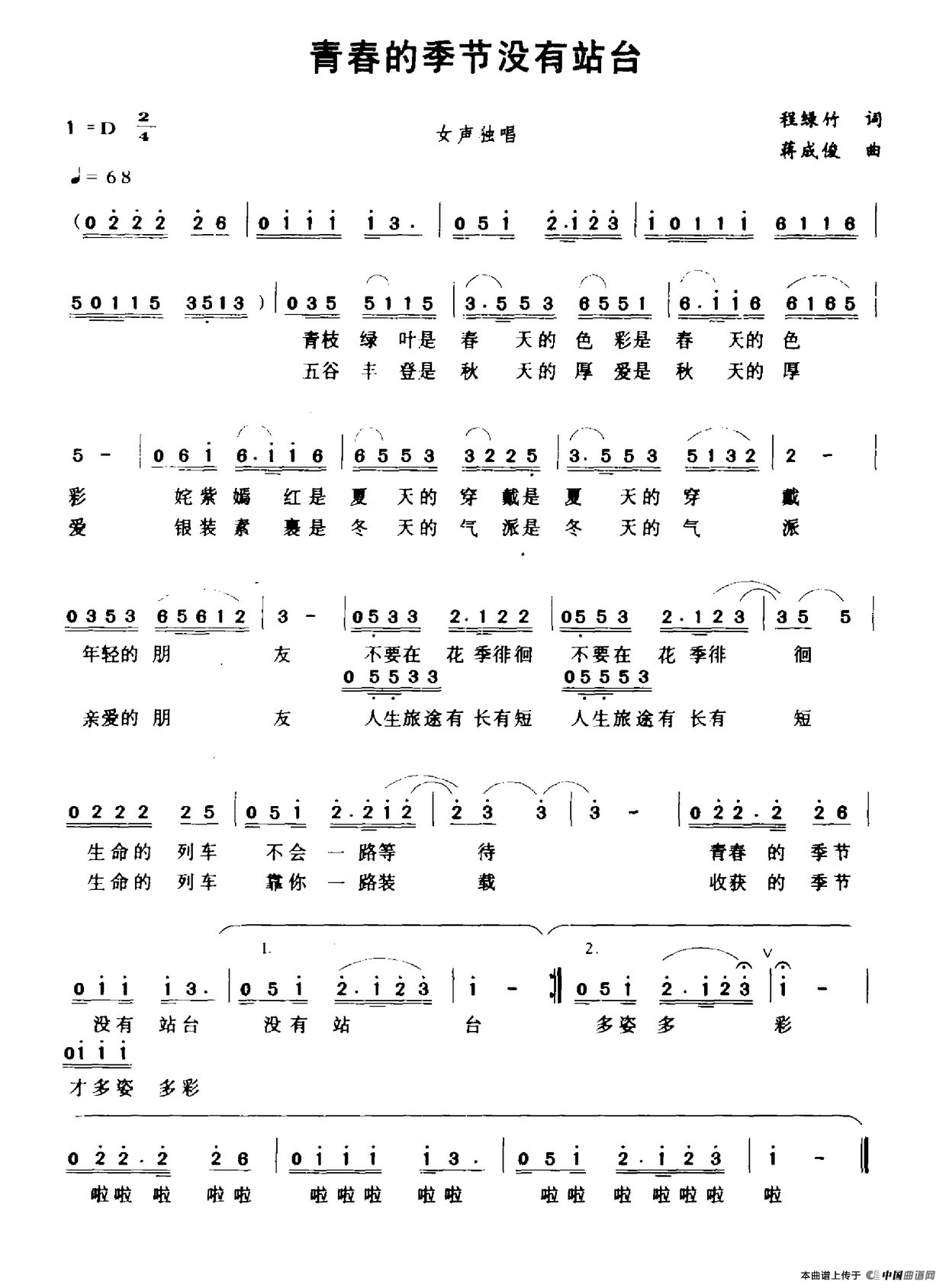 关于《青春的季节没有站台》曲谱的评论