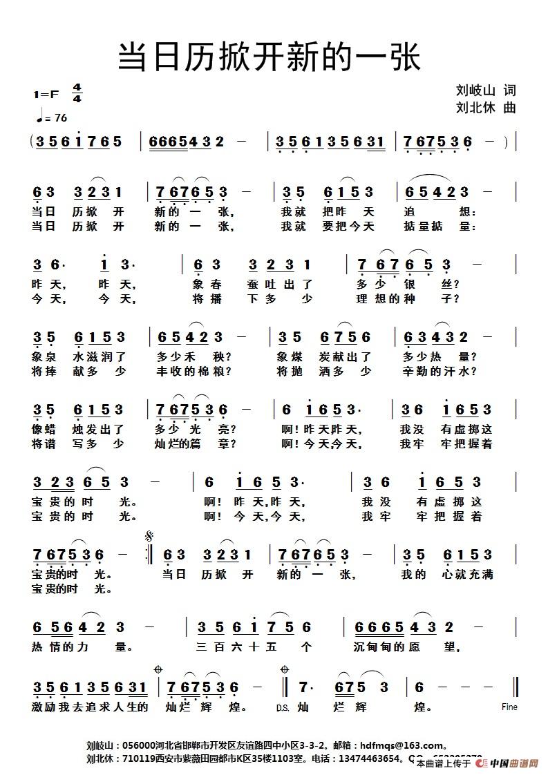 当日历掀开新的一张(刘岐山词 刘北休曲)(1)_原文件名:5当日历掀开新的一张(创20170110).jpg