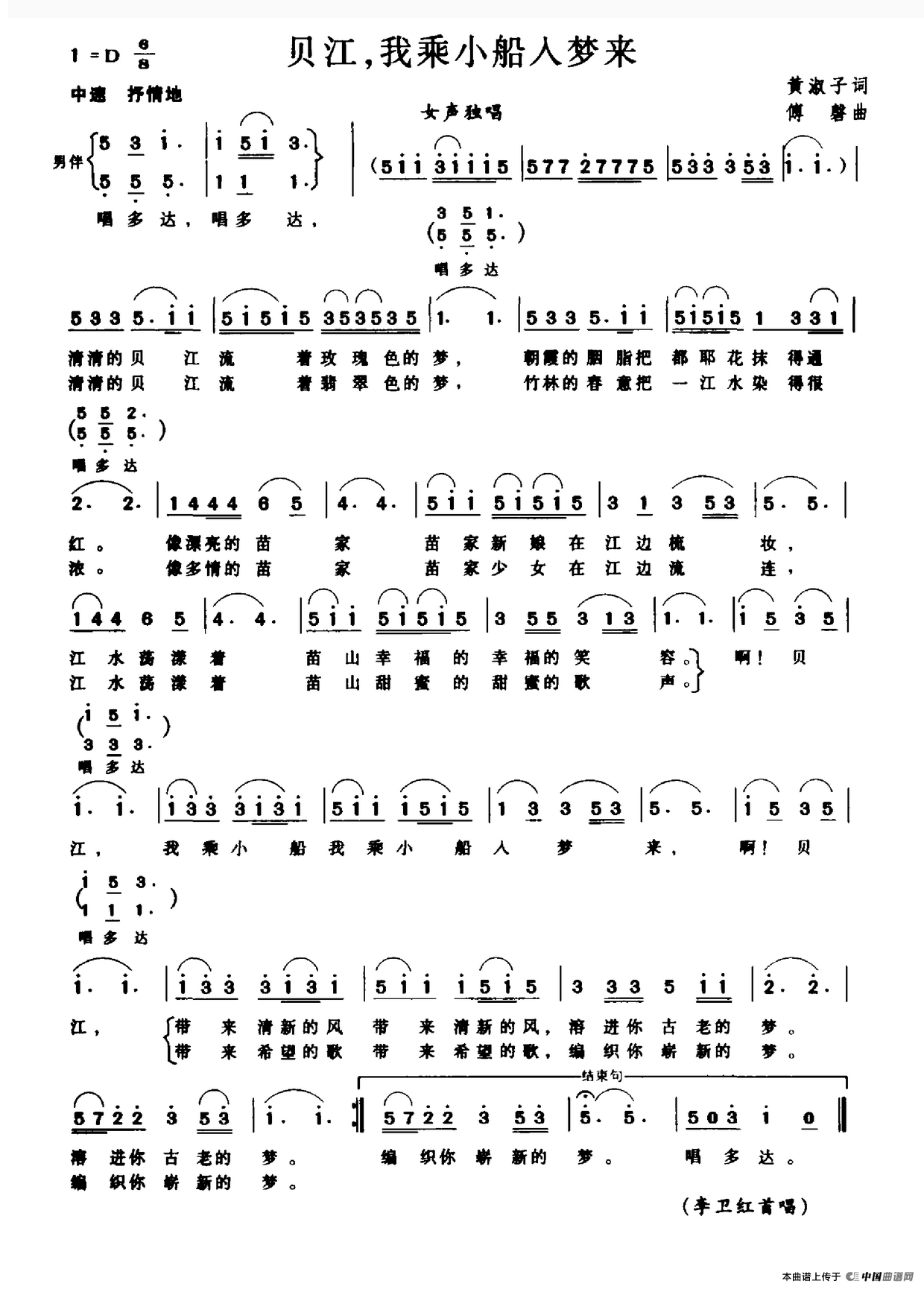 关于《贝江,我乘小船入梦来》曲谱的评论