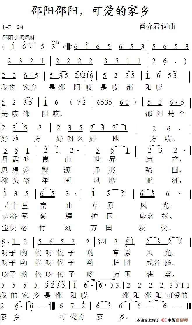 关于《邵阳邵阳,可爱的家乡》曲谱的评论