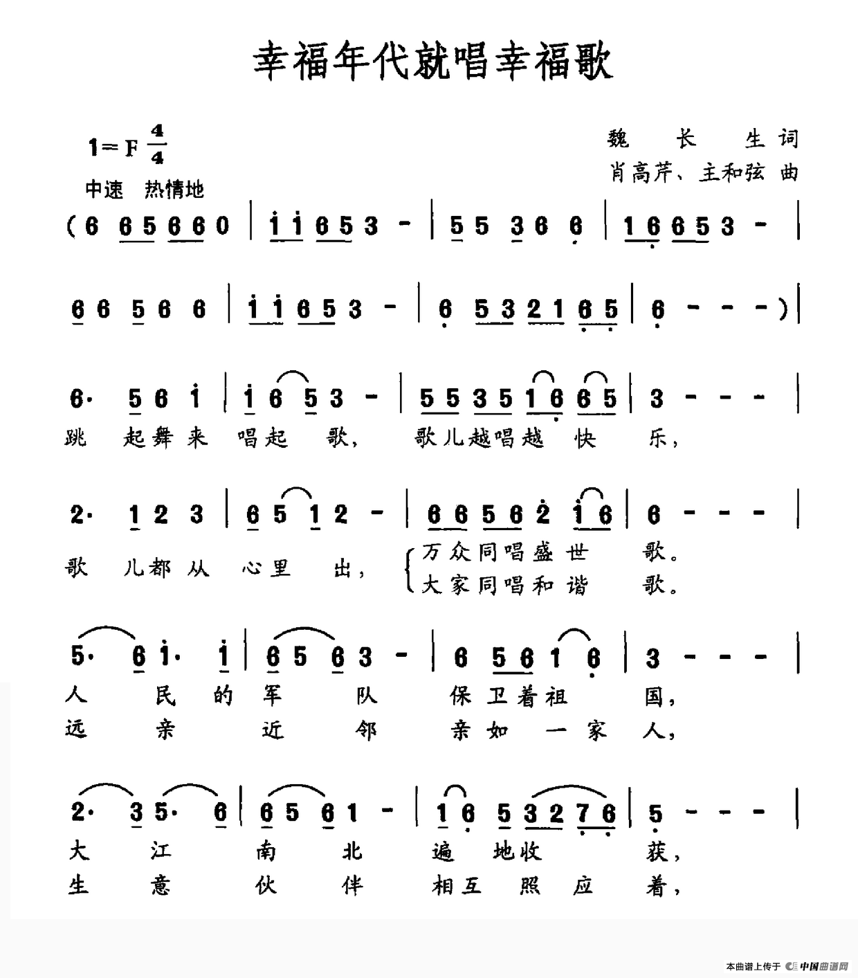 关于《幸福年代就唱幸福歌》曲谱的评论