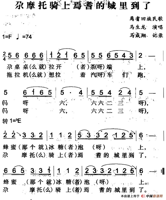 关于《尕摩托骑上焉耆的城里到了》曲谱的评论