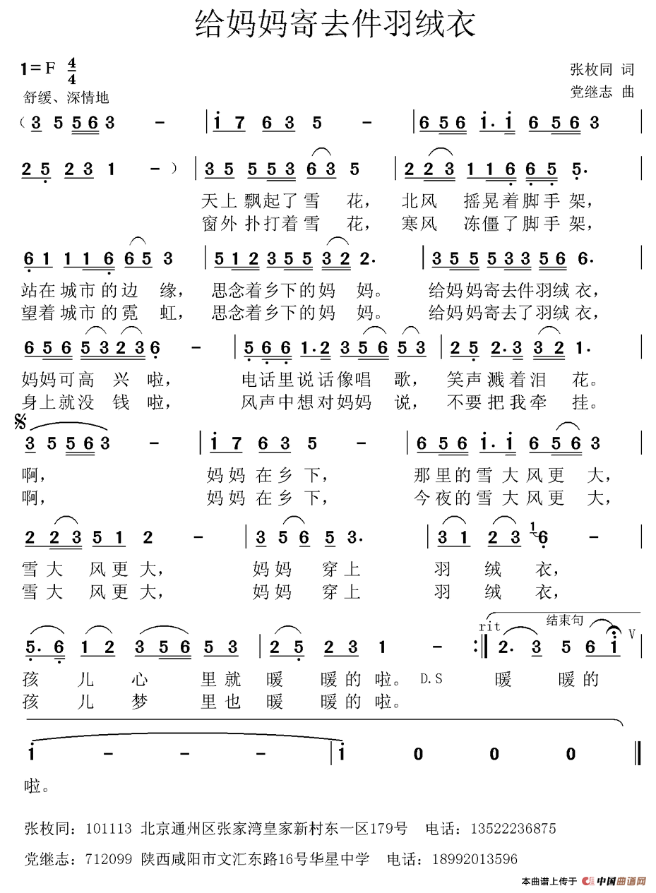 关于《给妈妈寄去件羽绒衣》曲谱的评论