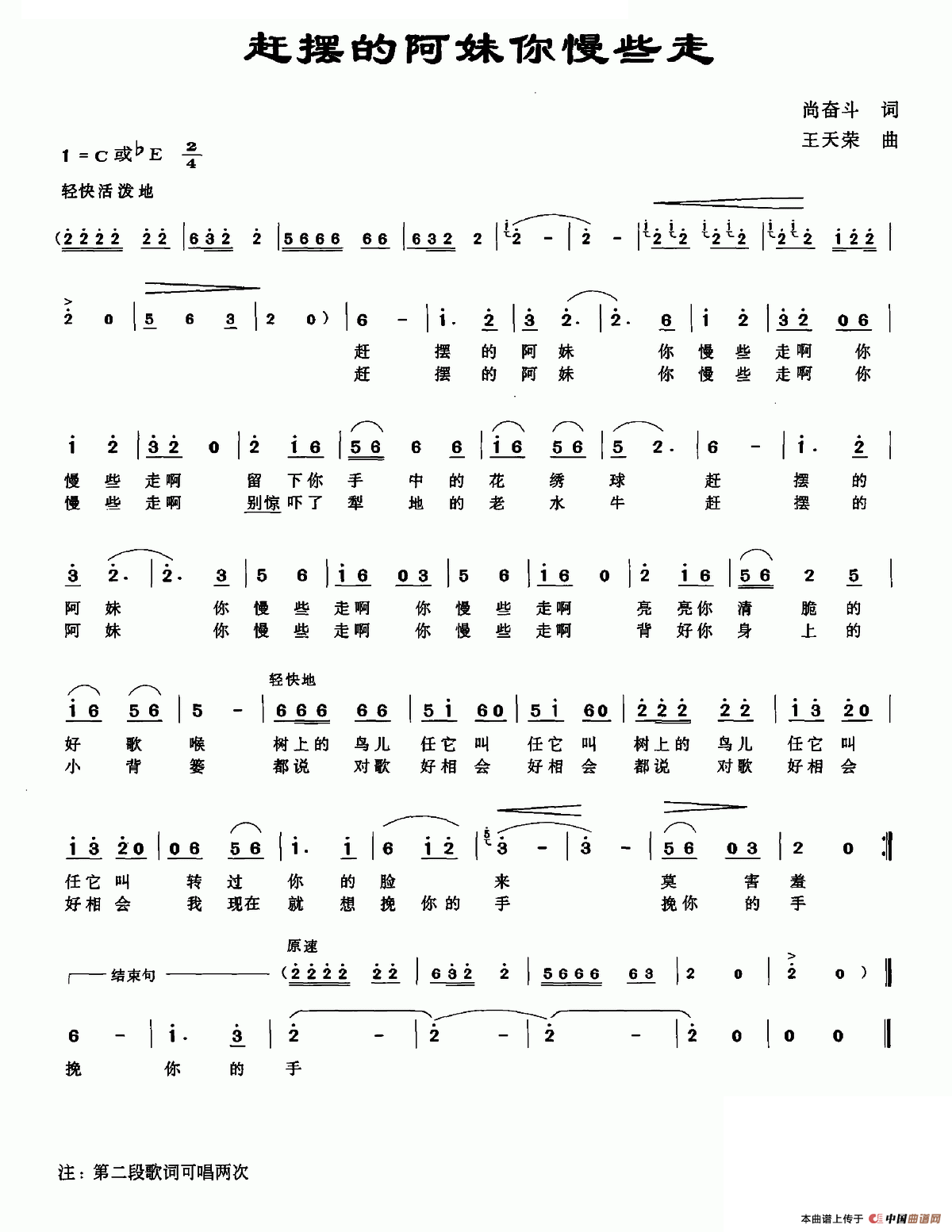 关于《赶摆的阿妹你慢些走》曲谱的评论