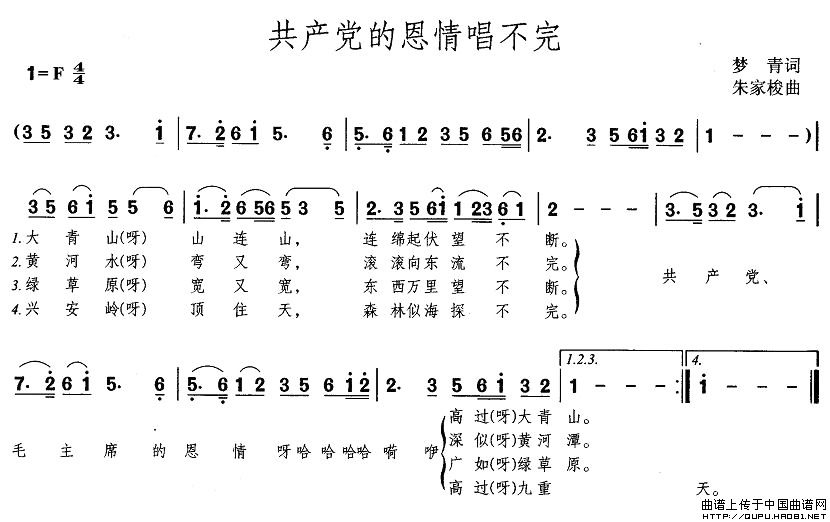 共产党的恩情唱不完(梦青词 朱家梭曲)