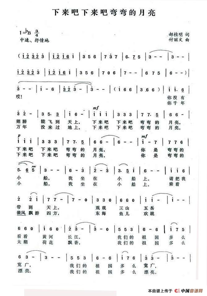关于《下来吧下来吧弯弯的月亮》曲谱的评论