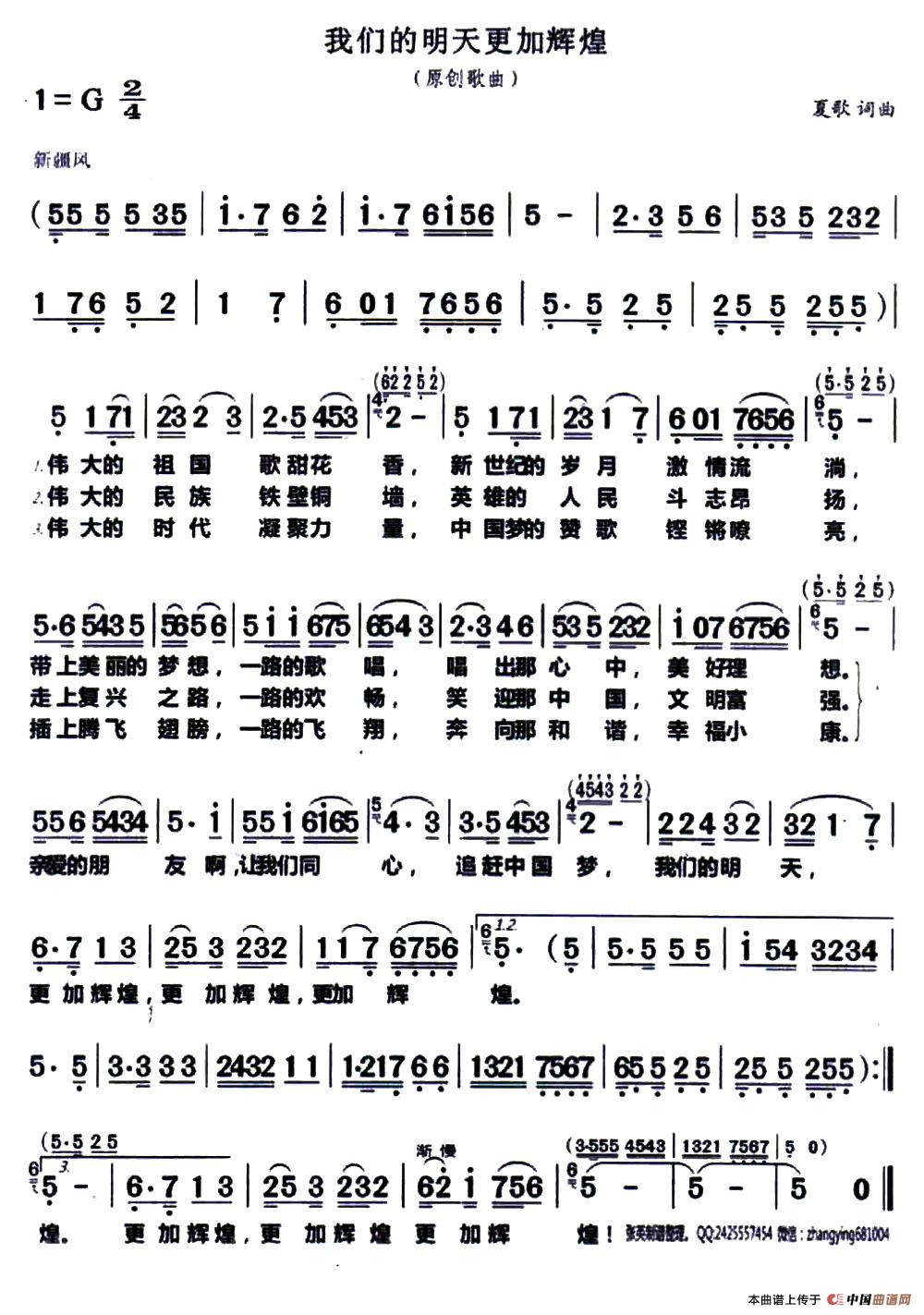 关于《我们的明天更加辉煌》曲谱的评论