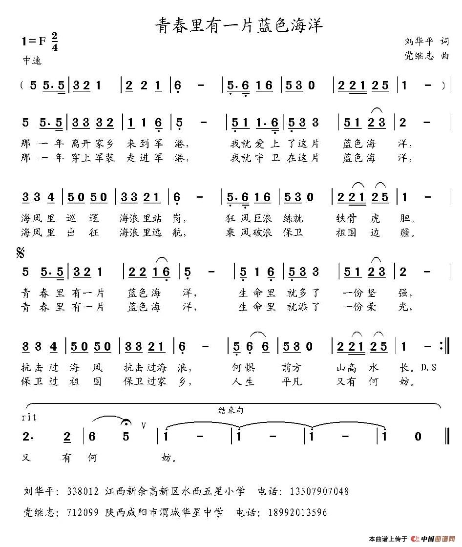 关于《青春里有一片蓝色海洋》曲谱的评论