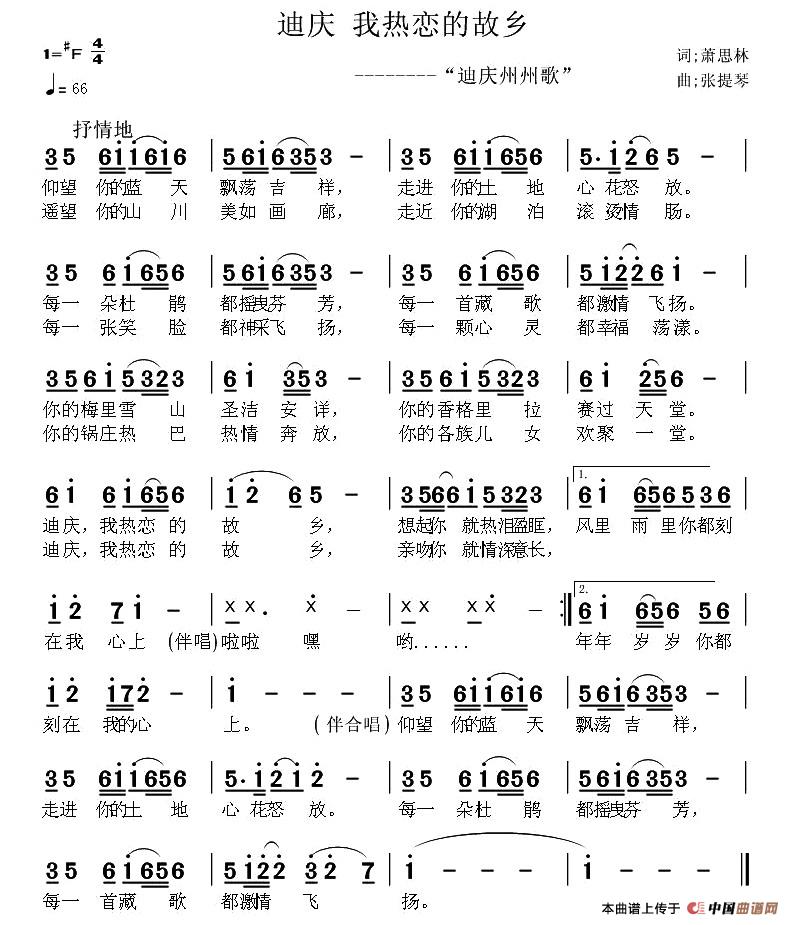 关于《迪庆 我热恋的故乡 》曲谱的评论