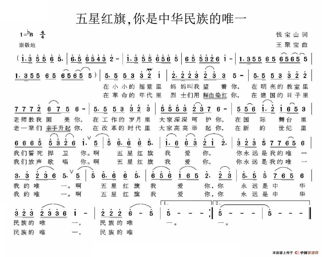 关于《五星红旗,你是中华民族的唯一》曲谱的评论