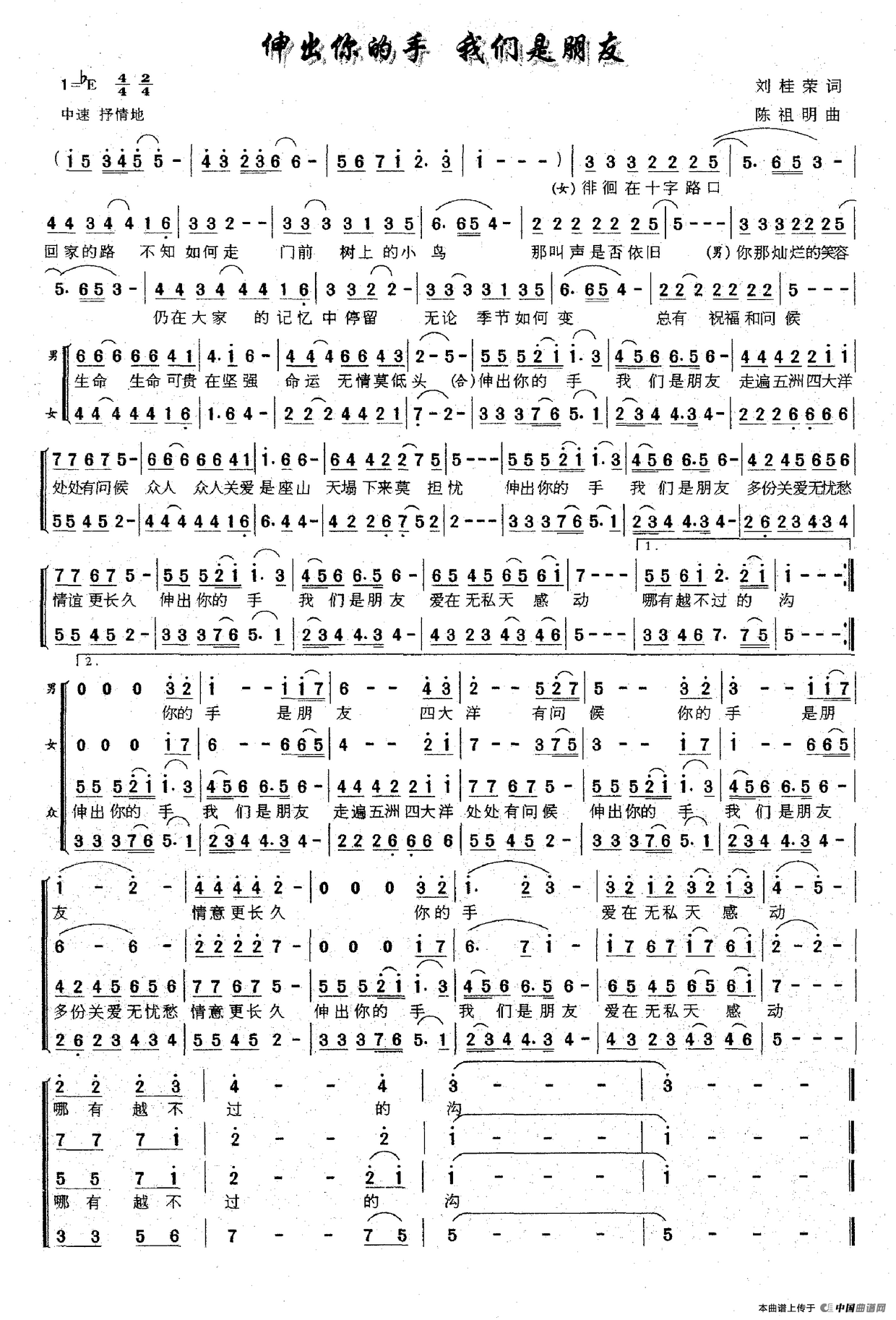 关于《伸出你的手 我们是朋友》曲谱的评论