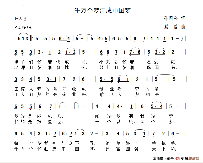 关于《千万个梦汇成中国梦》曲谱的评论