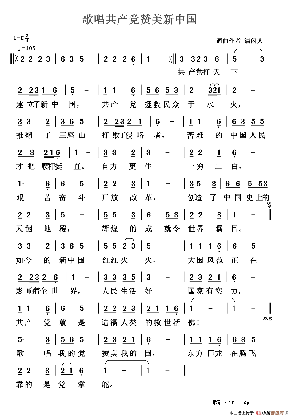 关于《歌唱共产党赞美新中国》曲谱的评论