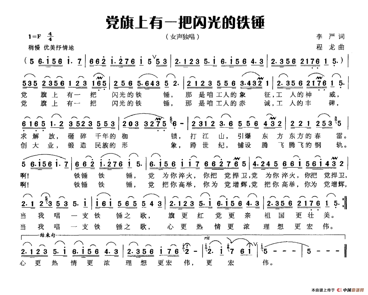 关于《党旗上有一把闪光的铁锤》曲谱的评论