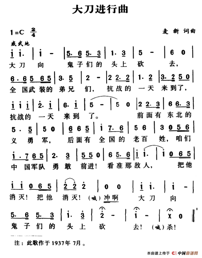 关于《军歌金曲:大刀进行曲》曲谱的评论