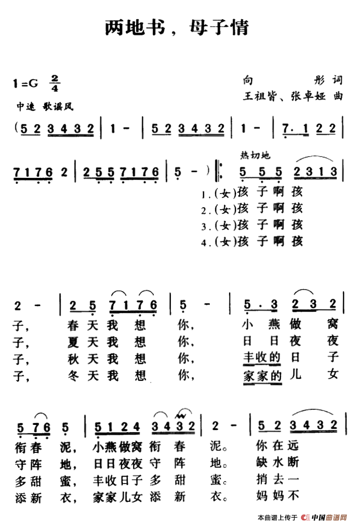关于《军歌金曲:两地书,母子情》曲谱的评论