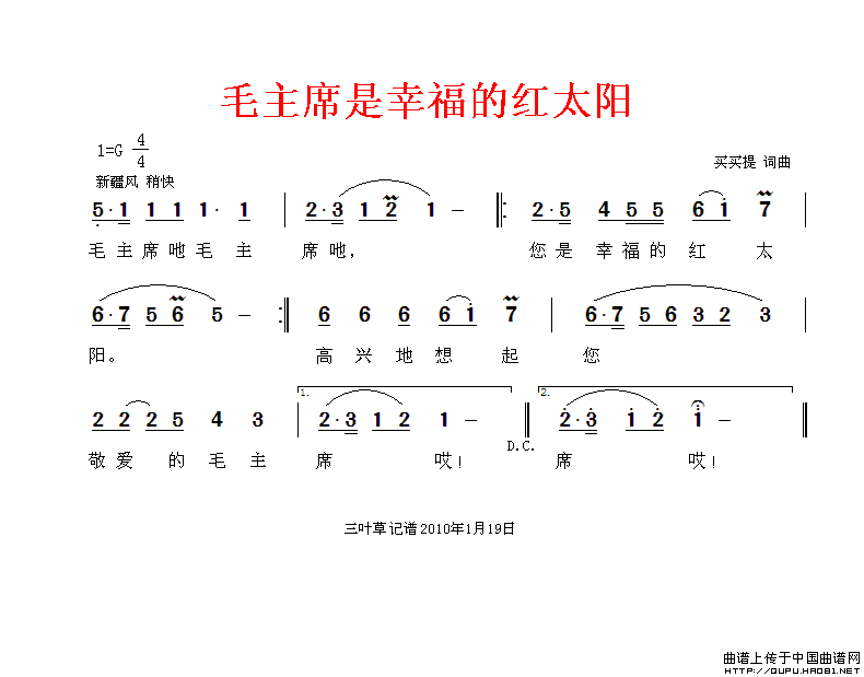 关于《毛主席是幸福的红太阳》曲谱的评论