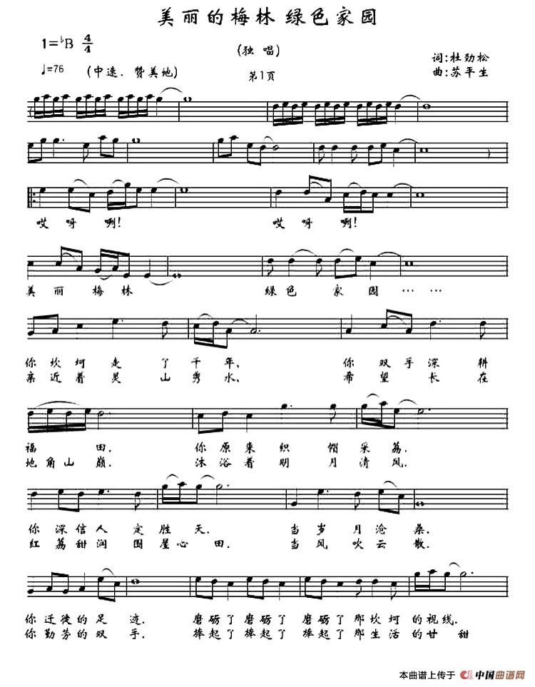 关于《美丽的梅林 绿色的家 》曲谱的评论
