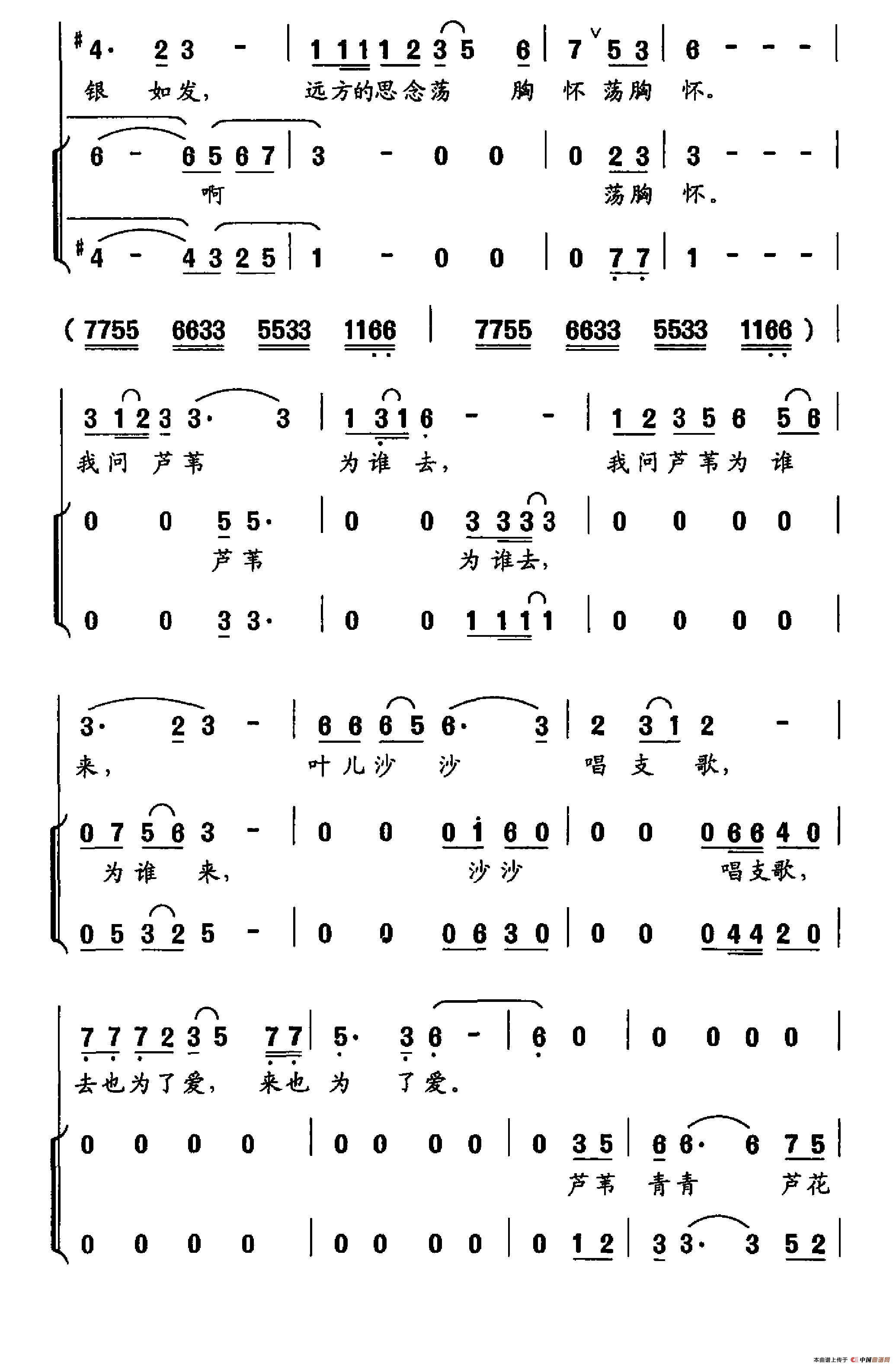 关于《芦苇儿青青芦花儿白》曲谱的评论