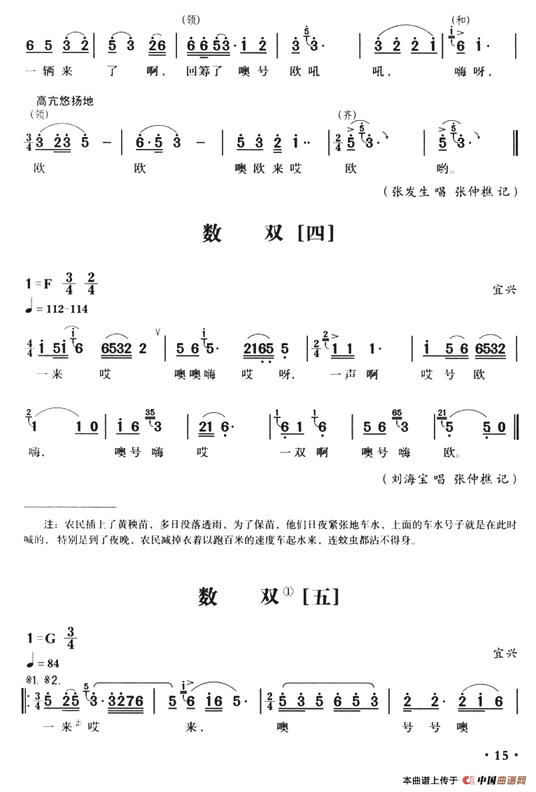 关于《无锡民歌:车水号子·数双》曲谱的评论