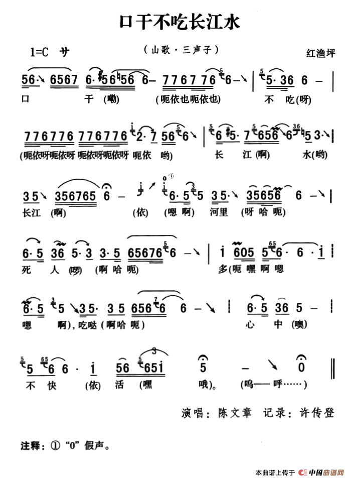 关于《五峰民歌:口干不吃长江水》曲谱的评论