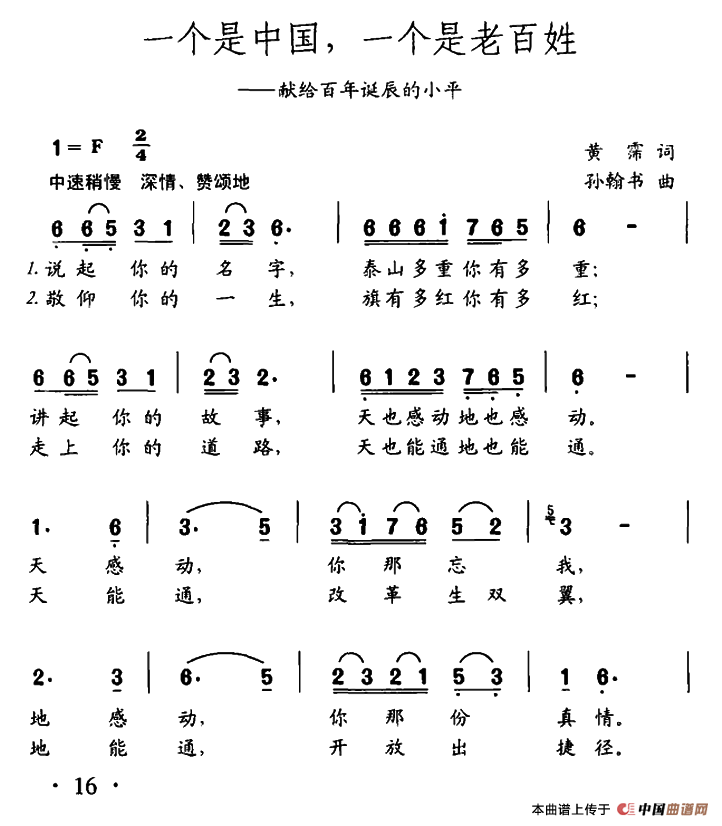 关于《一个是中国,一个是老百姓》曲谱的评论