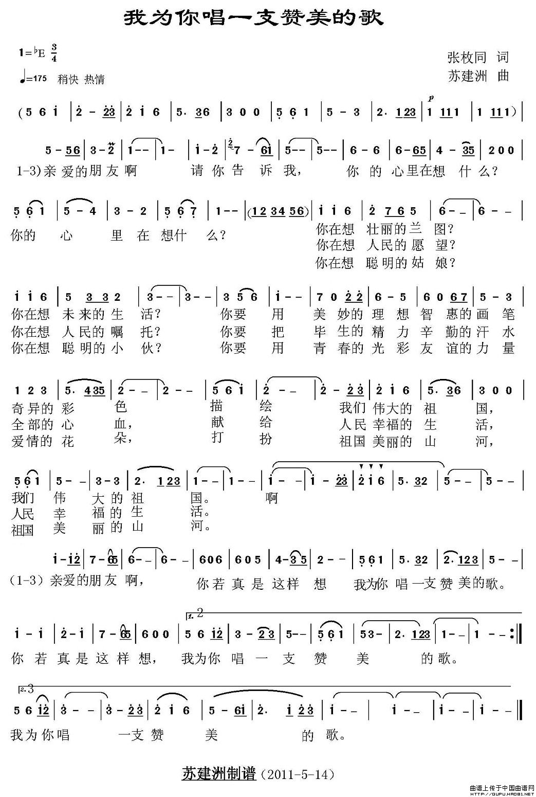 关于《我为你唱一支赞美的歌》曲谱的评论