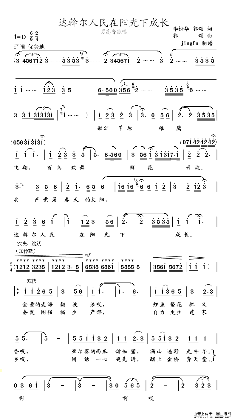 关于《达斡尔人民在阳光下成长》曲谱的评论