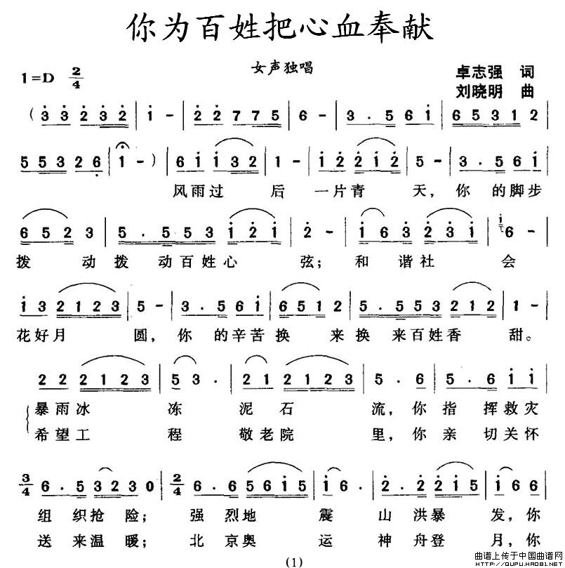 提示:在曲谱图片上单击右键,选择“图片另存为...”即可将曲谱保存到您的电脑中,打印时候可将图片插入到WORD中,调整合适大小打印即可。