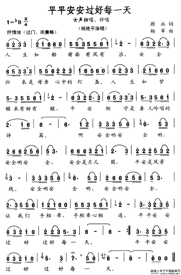 关于《平平安安过好每一天》曲谱的评论
