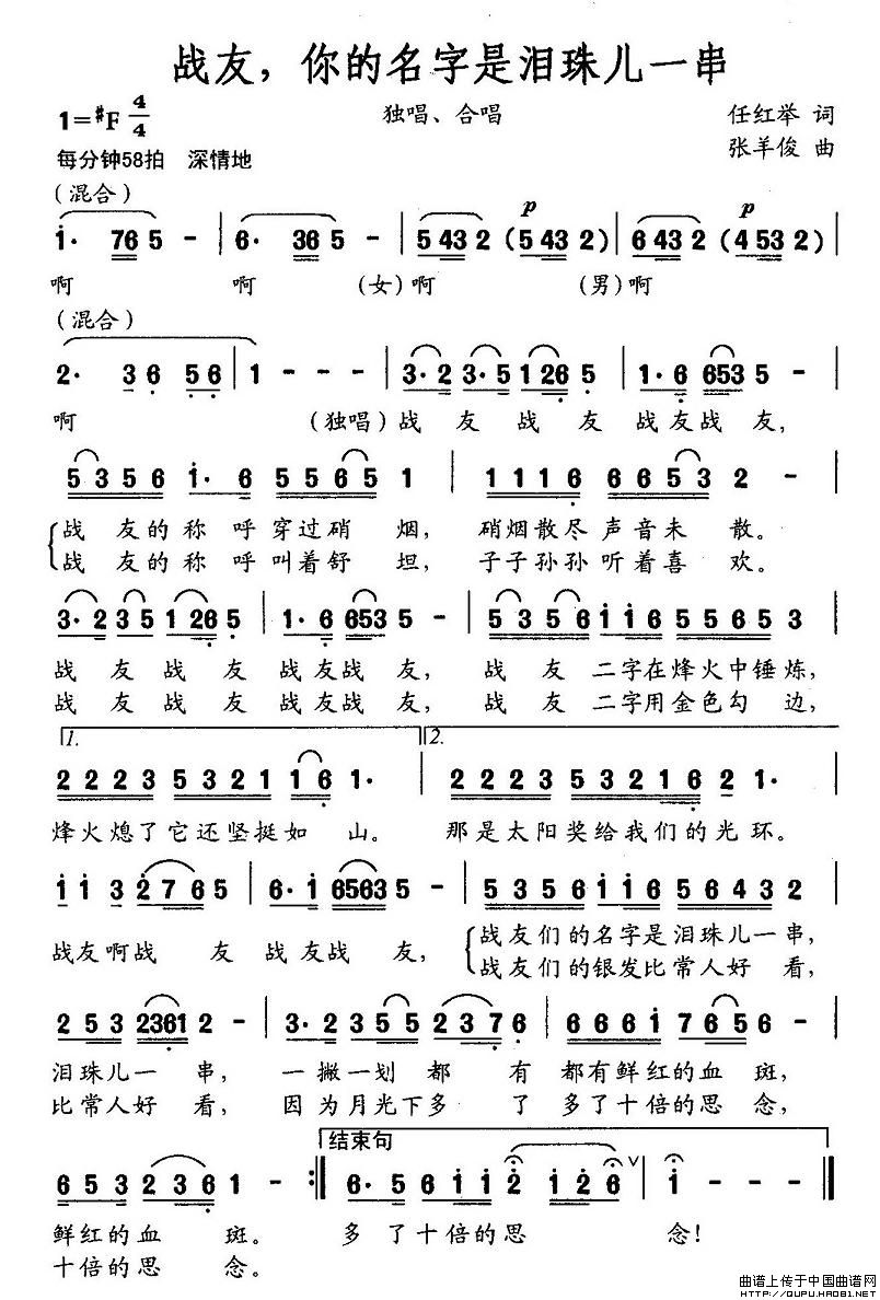 关于《战友,你的名字是泪珠儿一串》曲谱的评论