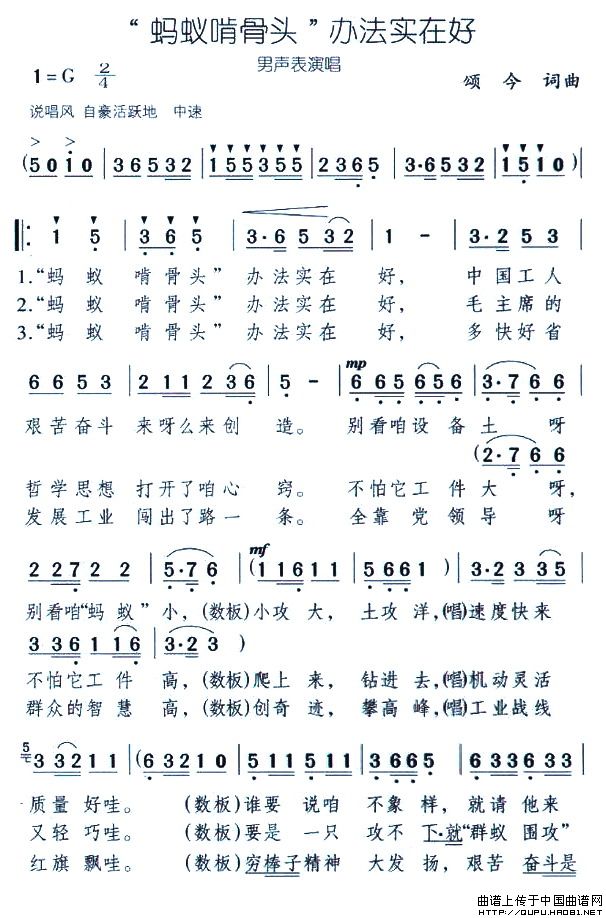 关于《“蚂蚁啃骨头”办法实在好》曲谱的评论