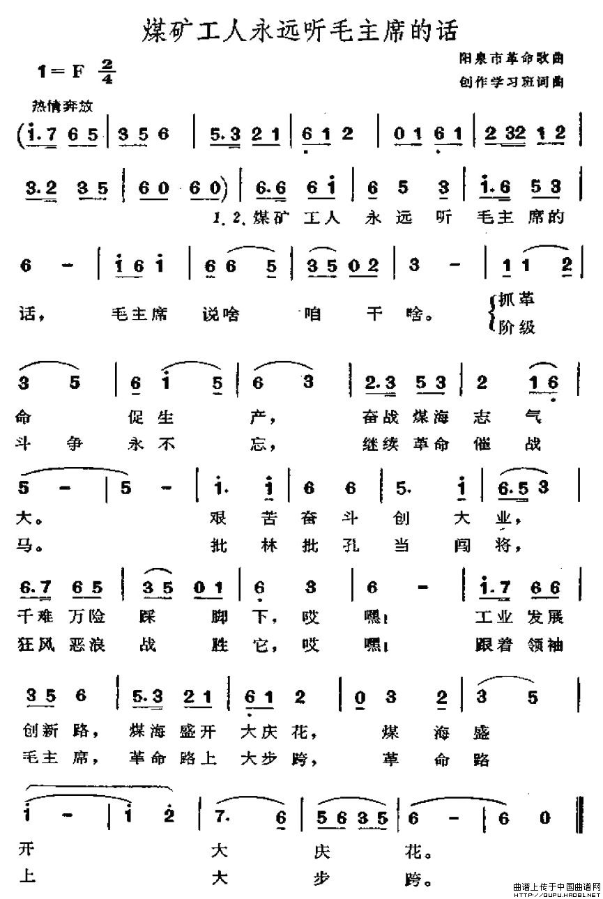 关于《煤矿工人永远听毛主席的话》曲谱的评论