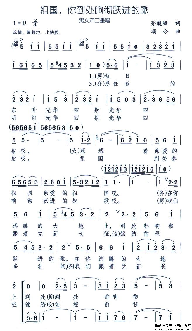 关于《祖国,你到处响彻跃进的歌》曲谱的评论