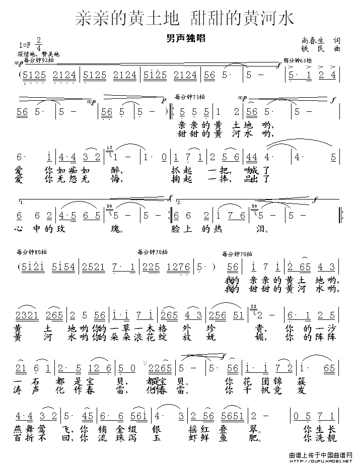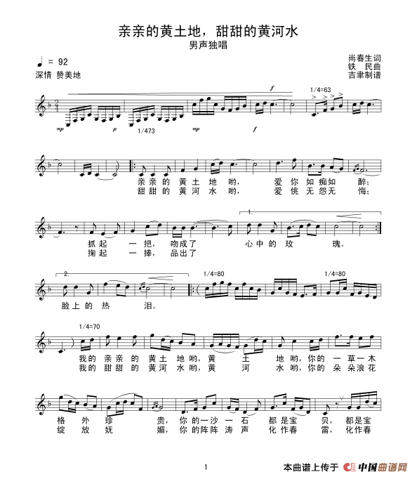 关于《亲亲的黄土地 甜甜的黄河水》曲谱的评论
