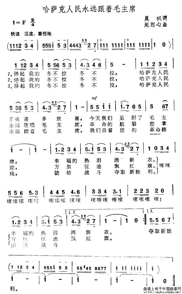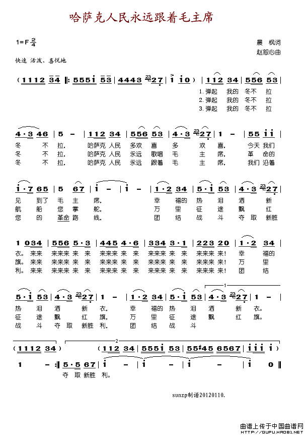 关于《哈萨克人民永远跟着毛主席》曲谱的评论