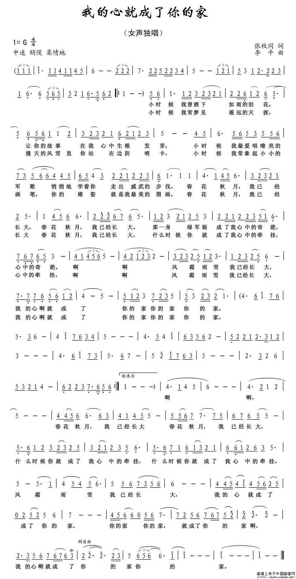 关于《我的心就成了你的家》曲谱的评论