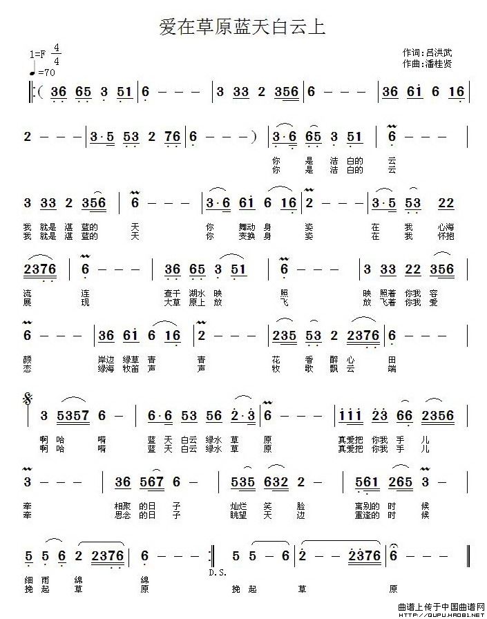 关于《爱在草原蓝天白云上》曲谱的评论