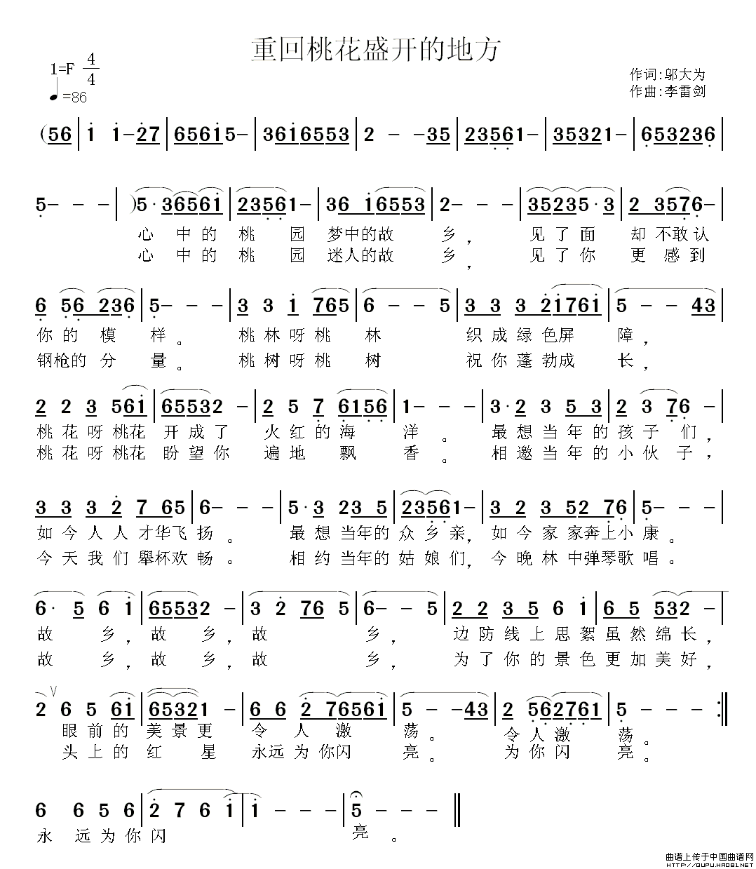 关于《重回桃花盛开的地方》曲谱的评论