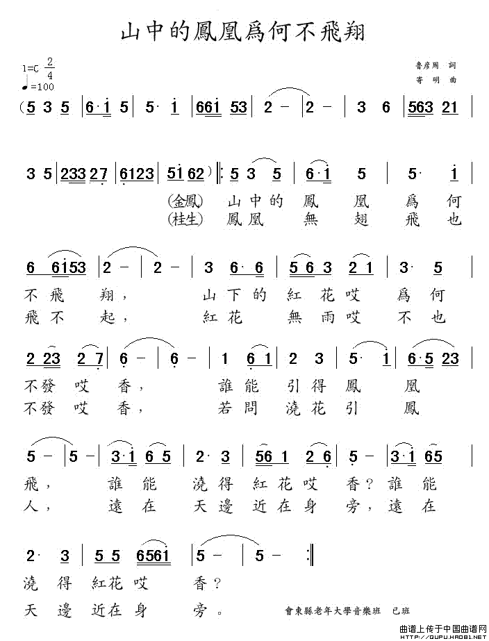 关于《山中的凤凰为何不飞翔》曲谱的评论