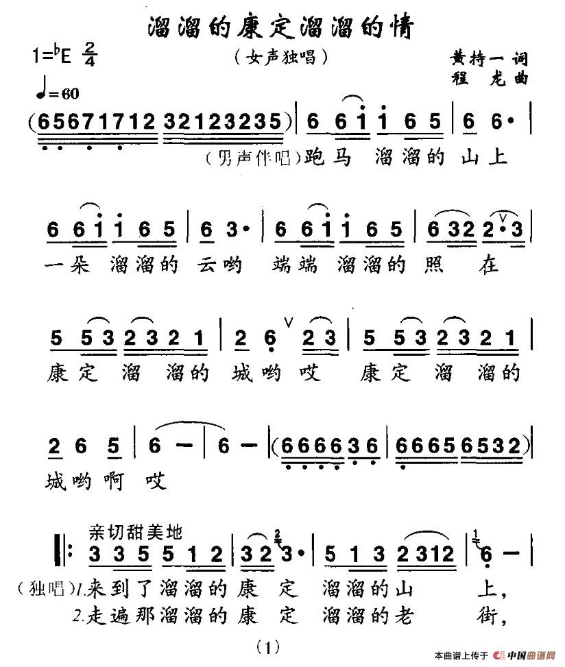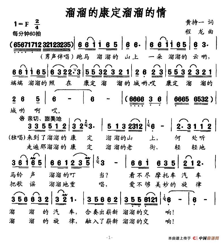 关于《溜溜的康定溜溜的情》曲谱的评论
