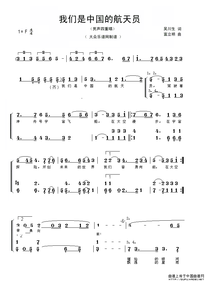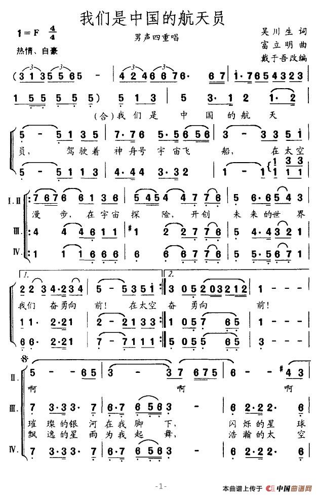 关于《我们是中国的航天员》曲谱的评论