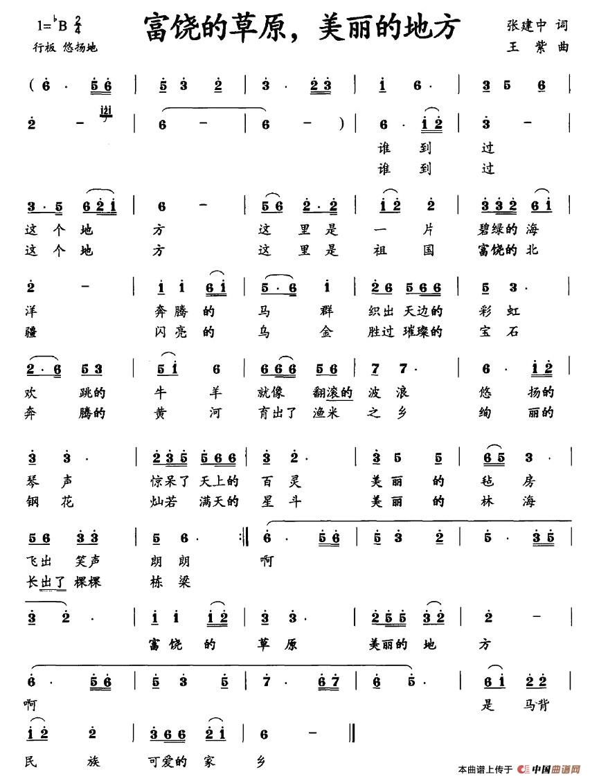 关于《富饶的草原,美丽的地方》曲谱的评论