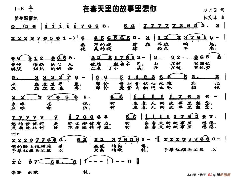关于《在春天的故事里想你》曲谱的评论