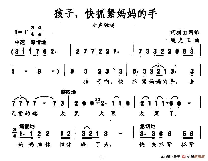 孩子,快抓紧妈妈的手(魏光正作曲)
