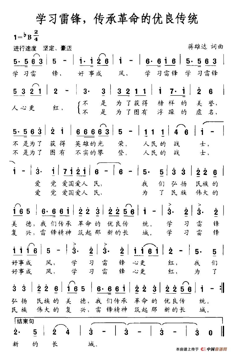 关于《学习雷锋,传承革命的优良传统》曲谱的评论