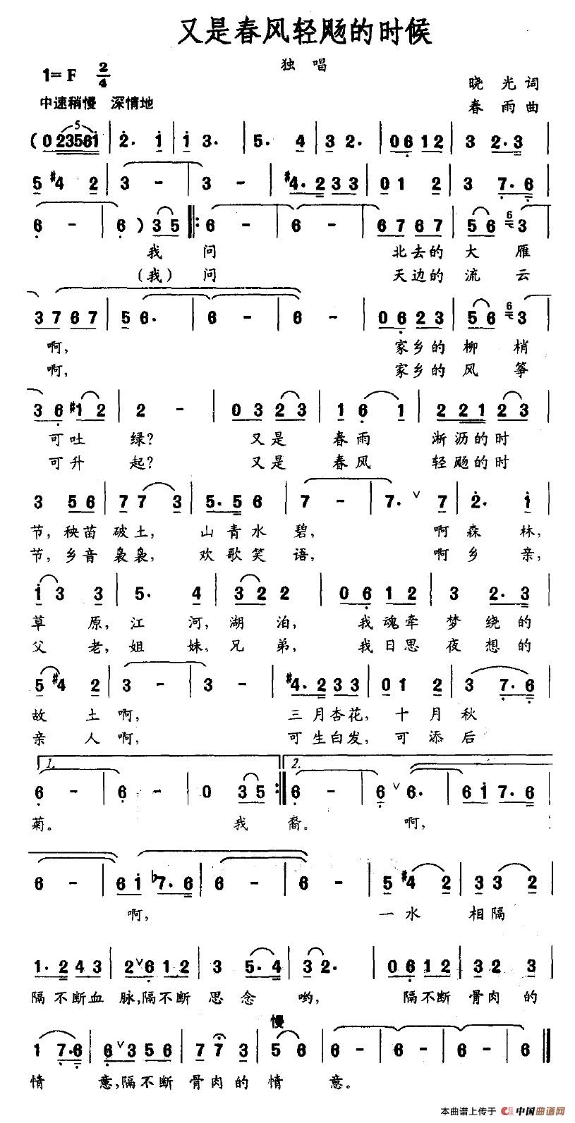 关于《又是春风轻飏的时候》曲谱的评论