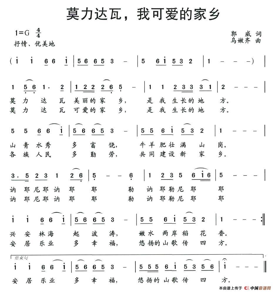 关于《莫力达瓦,我可爱的家乡》曲谱的评论